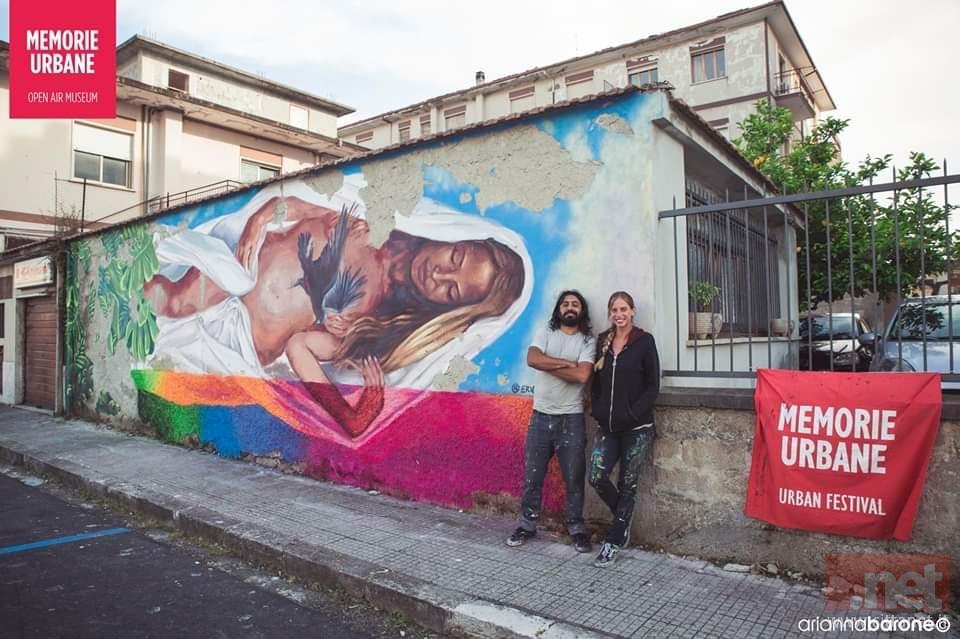 Martedì sono arrivati in Città e sono ripartiti alla volta di Isernia Sabato mattina, dove realizzeranno una nuova opera muraria, Alaniz ed Erica Arndts hanno superato ogni pronostico portando a termine ben due interventi nel giro di quattro giorni, in pieno centro urbano, su pareti di proprietà di privati Cittadini che hanno risposto positivamente al nostro appello. E proprio da loro vogliamo iniziare i ringraziamenti, perché se oggi la centralissima Via Trieste ha cambiato volto è anche e soprattutto merito della sensibilità delle Famiglie Barone, Conti, D’Ambrini e Di Fazio. Le pareti delle loro abitazioni si prestavano perfettamente per le finalità che il nostro Progetto intende perseguire: riqualificare un luogo attraverso la Street Art e trasformarlo in un punto di interesse culturale, che inevitabilmente finisce per migliorare l’intero quartiere.
