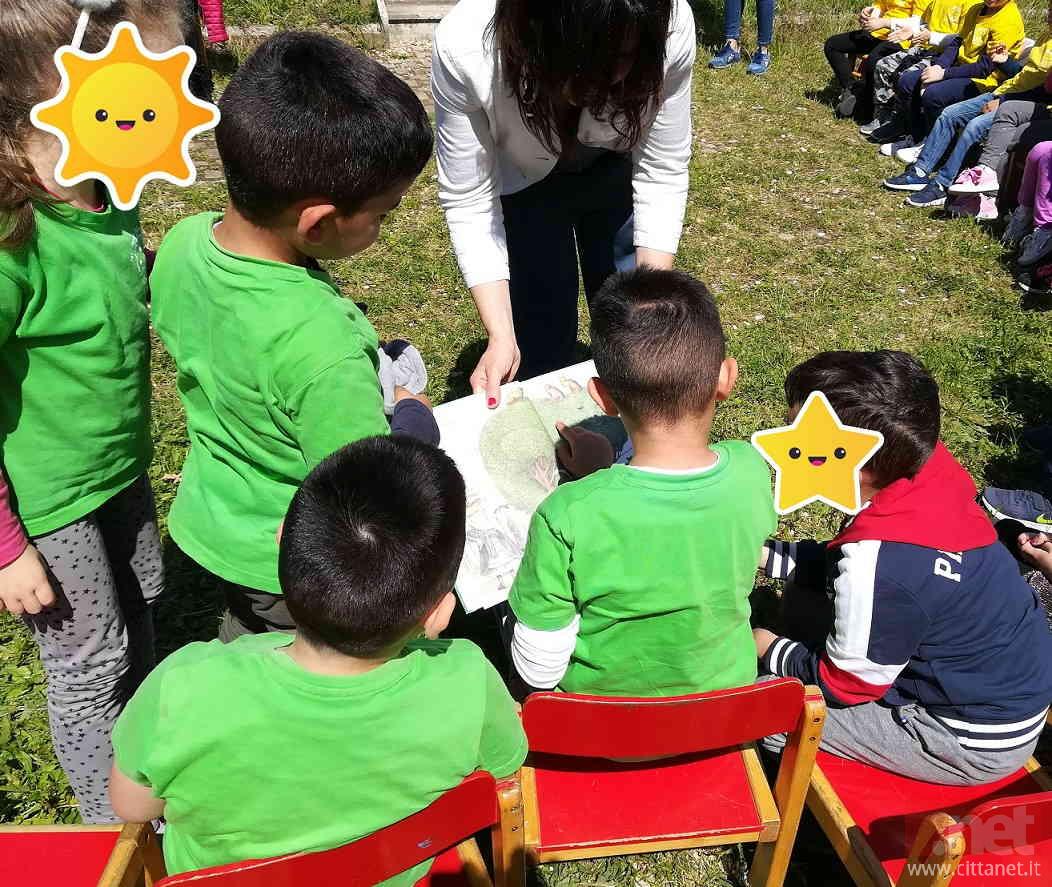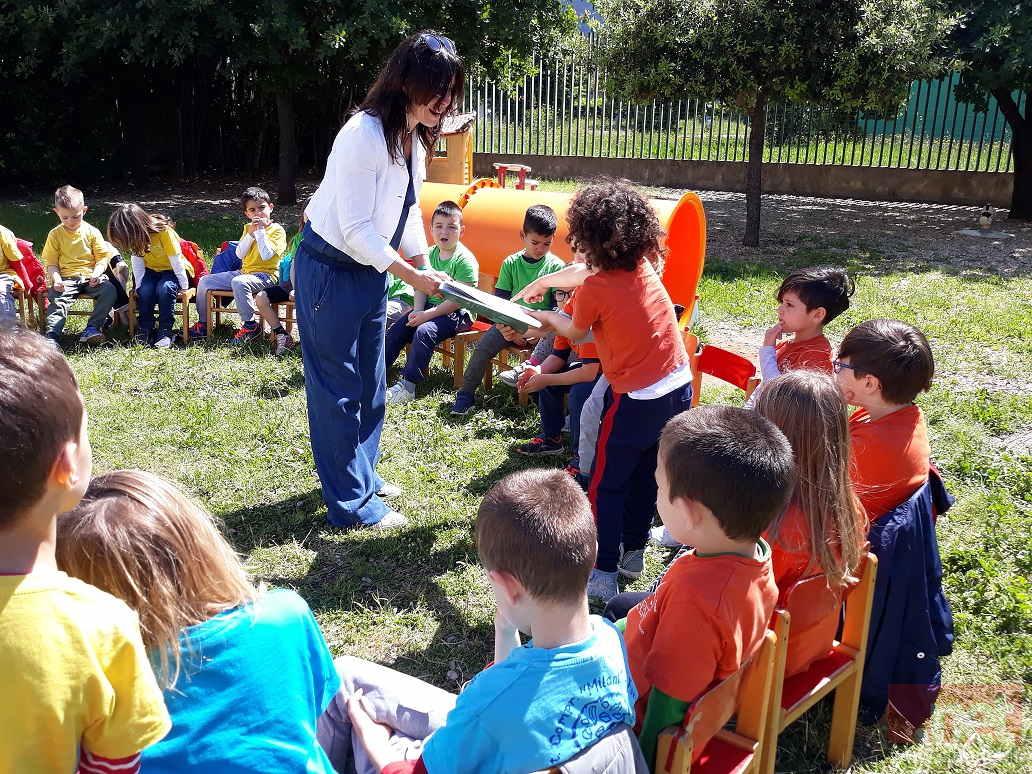 Si è aperta e chiusa così, con il coro straripante di 60 bambini di 5 e 6 anni e delle loro maestre, la giornata di letture e educazione naturalistica che Leggimi Sempre (piattaforma per la promozione della lettura all’infanzia) e Fare Verde Fondi (associazione ambientalista) hanno realizzato ieri lunedì 20 maggio nel giardino della Scuola dell’infanzia “Giulia Gonzaga” di Fondi (Lt), nella cornice del “Maggio dei Libri”.