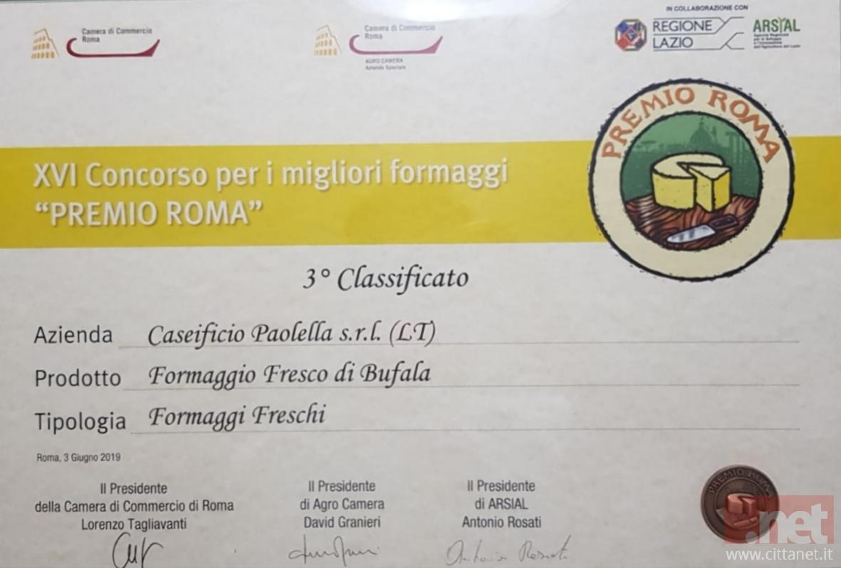 Terzo classificato nel prestigioso concorso “Premio Roma”, ormai giunto alla sua 16esima edizione, è infatti risultato il Caseificio Paolella.