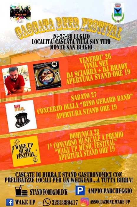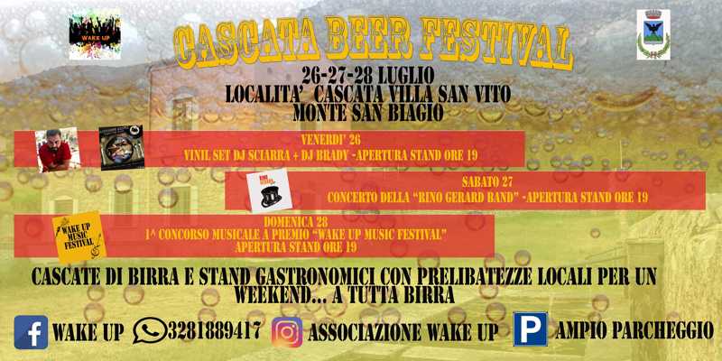 Dopo lo straordinario successo di "Mi Sa di Buono" la WakeUp torna in pista con una novita' assoluta, “Cascata Beer Festival" che si svolgerà nella meravigliosa location naturalistica: Cascata San Vito (Monte San Biagio).