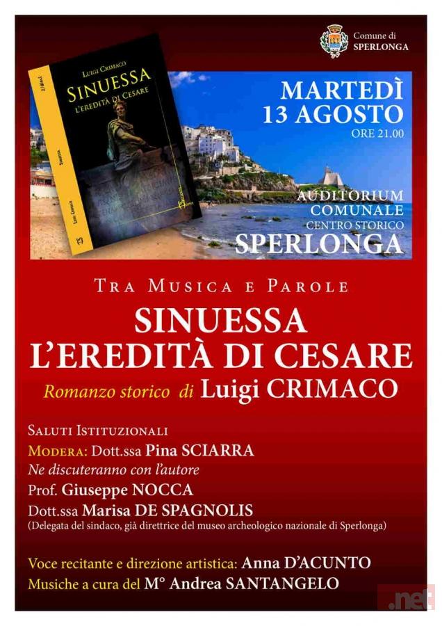 Si terrà domani 13 agosto, alle ore 21, la presentazione del Romanzo storico che si terrà presso la splendida location dell’Auditorium comunale di Sperlonga posto nel cuore del centro di Sperlonga