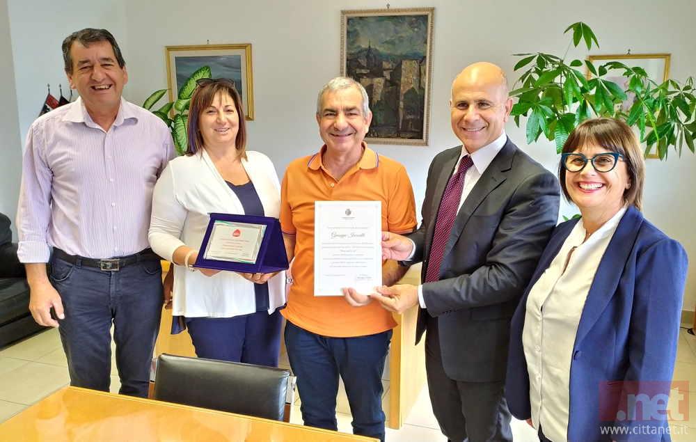 L’incontro si è concluso con il conferimento a Iacovelli da parte del Sindaco De Meo di un’attestazione di merito, «una pergamena che vuole essere una testimonianza di vicinanza per l’entusiasmo e la forza dimostrate e di cui Giuseppe non mancherà di dare prova nelle iniziative future».