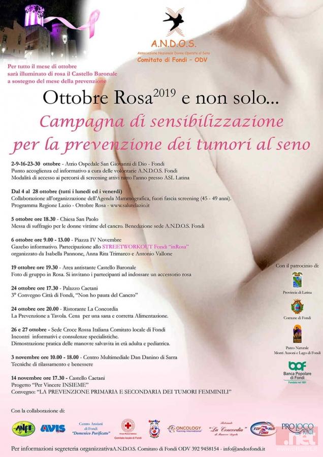 Anche quest’anno torna l’Ottobre Rosa, la campagna di sensibilizzazione per la prevenzione dei tumori al seno promossa a Fondi dal Comitato A.N.D.O.S. ODV - Organizzazione di volontariato.