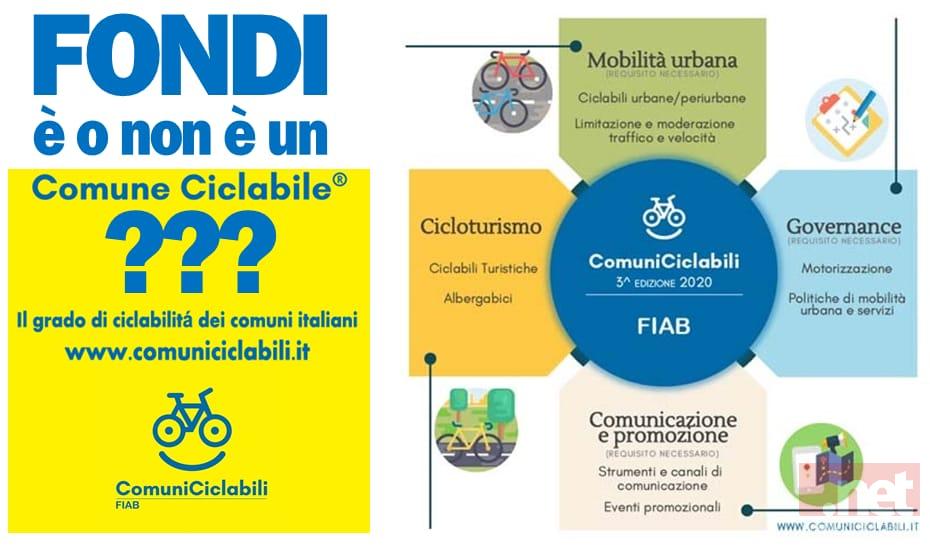 Fare Verde FONDI ha iniziato da tempo una grande Campagna di Sensibilizzazione sui temi della mobilità sostenibile, spesso incontrando il favore di Associazioni e Cicloamatori ed il silenzio delle Istituzioni. E siccome si fa un gran parlare di Ciclabilità vogliamo che siano i Cittadini a darci una risposta, sulla base del lavoro che FIAB Onlus promuove con il riconoscimento ComuniCiclabili FIAB.