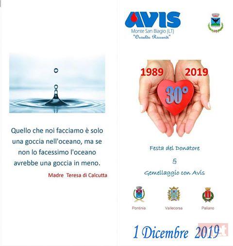 Festa del donatore oggi a Monte San Biagio: ad annunciarlo è il locale presidente dell'Avis.