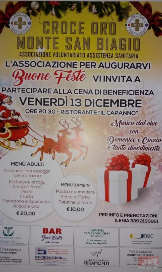 Torna a Monte San Biagio la cena di beneficenza promossa dalla Croce Oro, associazione volontaria di assistenza sanitaria.