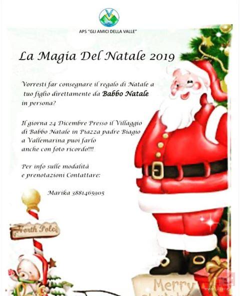 L'atmosfera natalizia sta per pervadere il paese presepe grazie all'associazione "Gli Amici della Valle" che hanno organizzato un suggestivo villaggio di Babbo Natale, sotto la Sughereta, in piazza Padre Biagio a Vallemarina.