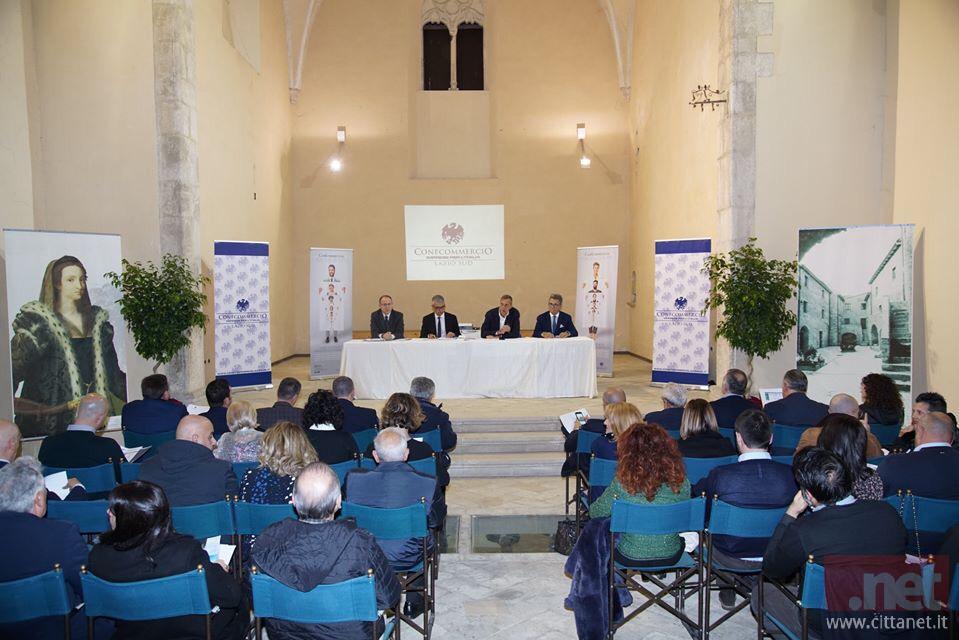 Nella splendida cornice dell'Auditorium Comunale del Chiostro di San Domenico a Fondi, il Presidente Giovanni Acampora, il Vice Presidente Vicario Italo Di Cocco e il Direttore Generale Salvatore Di Cecca hanno accolto tutti gli associati della provincia di Frosinone e Latina per la tradizionale cena di Natale per lo scambio degli auguri, realizzata con i prodotti tipici locali dei produttori associati a Confcommercio Lazio Sud.