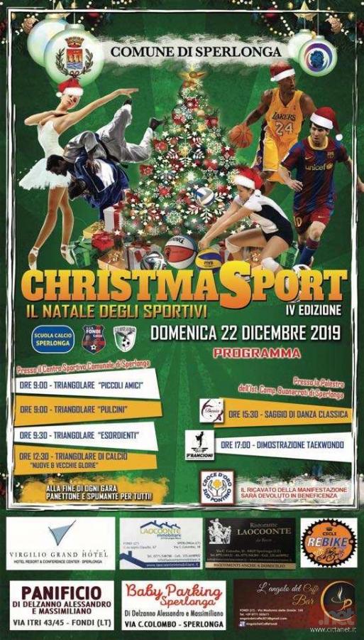 Una giornata di sano sport per giovani e giovanissimi, per vivere tutti insieme una esperienza in allegria prima delle festività natalizie. E’ con questo consueto spirito che avrà luogo domenica 22 dicembre a Sperlonga, l’evento “Christmas Sport – Il Natale degli Sportivi”