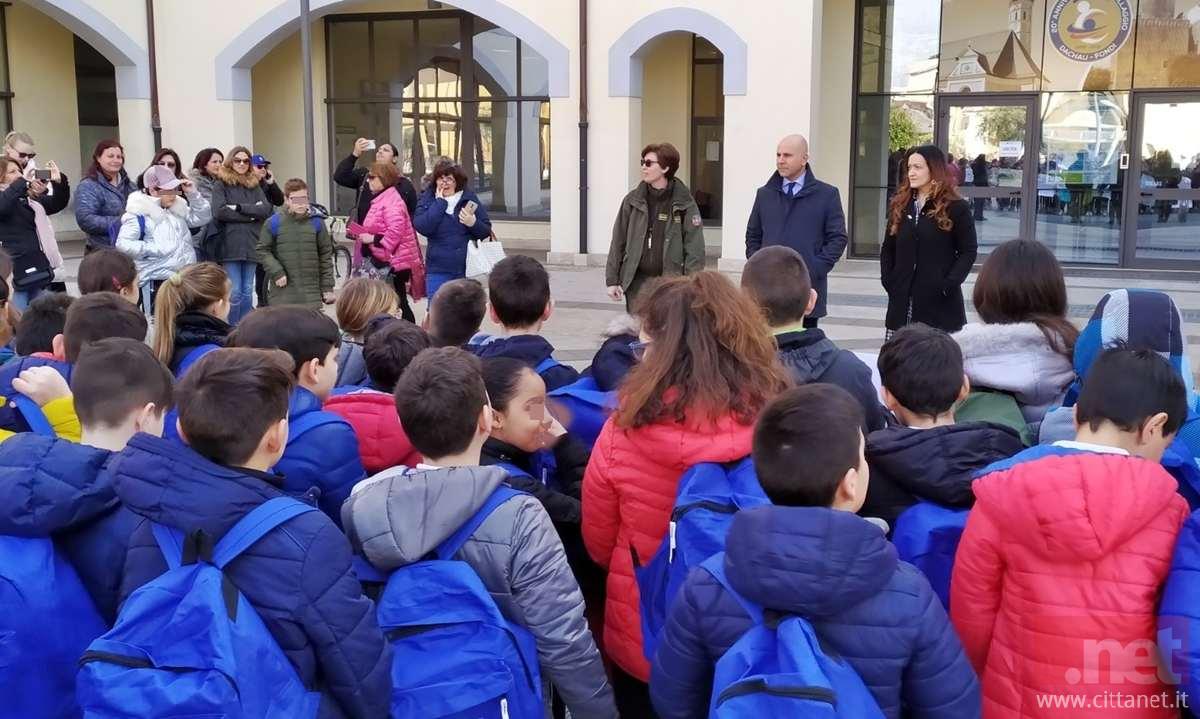 Dopo una passeggiata alla scoperta del percorso dell’acqua all’interno di Fondi e delle criticità legate ad un uso non corretto di questa risorsa, e un corteo attraverso il centro storico con il Dirigente dell’Area Promozione del Territorio del Parco Ausoni Raniero De Filippis e l’Assessore all’Ambiente Roberta Muccitelli, gli alunni e i loro insegnanti hanno raggiunto piazza Municipio. Lì hanno incontrato anche il Sindaco Salvatore De Meo, al quale hanno presentato i lavori svolti in classe sul tema della riduzione della plastica e della tutela ambientale.