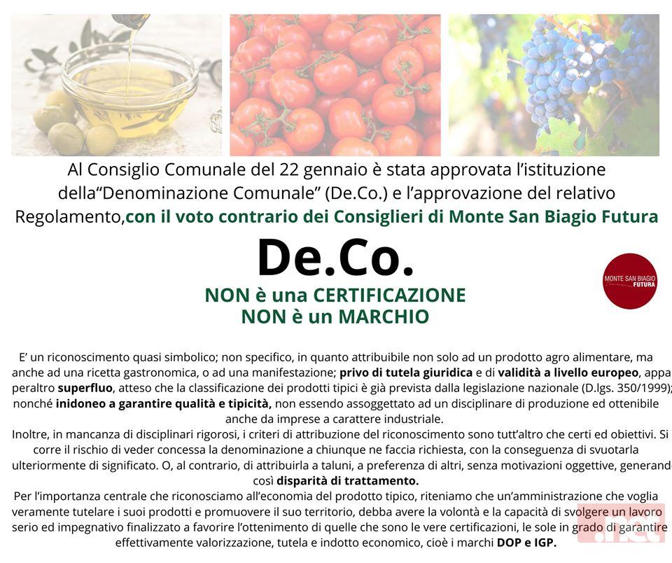 Marchio DeCo? Solo una trovata propagandistica: Monte San Biagio Futura spiega perché