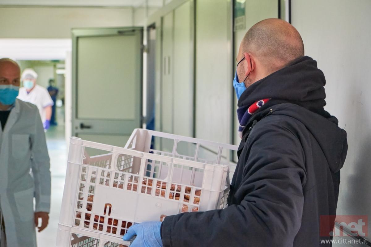 Cento pizze ma anche dolci, crostate e biscotti sono state consegnate attraverso la Direzione Sanitaria per garantire un ristoro a tutti i circa 90 dipendenti impegnati in questa fascia oraria all’interno del nosocomio fondano, grazie alla generosità di Roberto Petrillo e la sua “Fortuna” Produzione Prodotti Panetteria. Ma non solo, perché grazie alla disponibilità della Comunità Cristiana "Chiesa di Fondi" e della Chiesa Cristiana Evangelica Cinese di Prato (con l'intermediazione di Giovanni Cappello della missione "Cristo è la Risposta") è stato possibile donare ben 400 mascherine che sicuramente torneranno utili in questi giorni di emergenza.