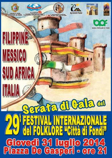 Per la ventinovesima volta Fondi ospiterà il mondo in piazza, con tradizioni, danze e costumi dai cinque continenti, offrendo la possibilità di godere di uno degli spettacoli più attesi e apprezzati del panorama culturale fondano. Il “Festival Internazionale del Folklore Città di Fondi” costituisce un’occasione di integrazione e di interscambio culturale sotto l’egida del CIOFF, il comitato internazionale degli organizzatori dei festival del folklore e delle arti tradizionali fondato nel 1987.