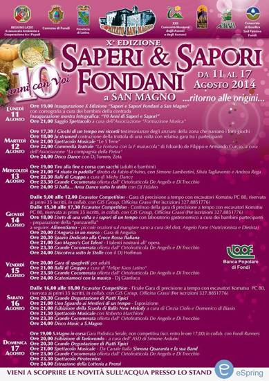 Dall’11 al 17 Agosto p.v. la Villa Demetriana ospiterà la decima edizione della manifestazione “Saperi & Sapori Fondani a San Magno”.