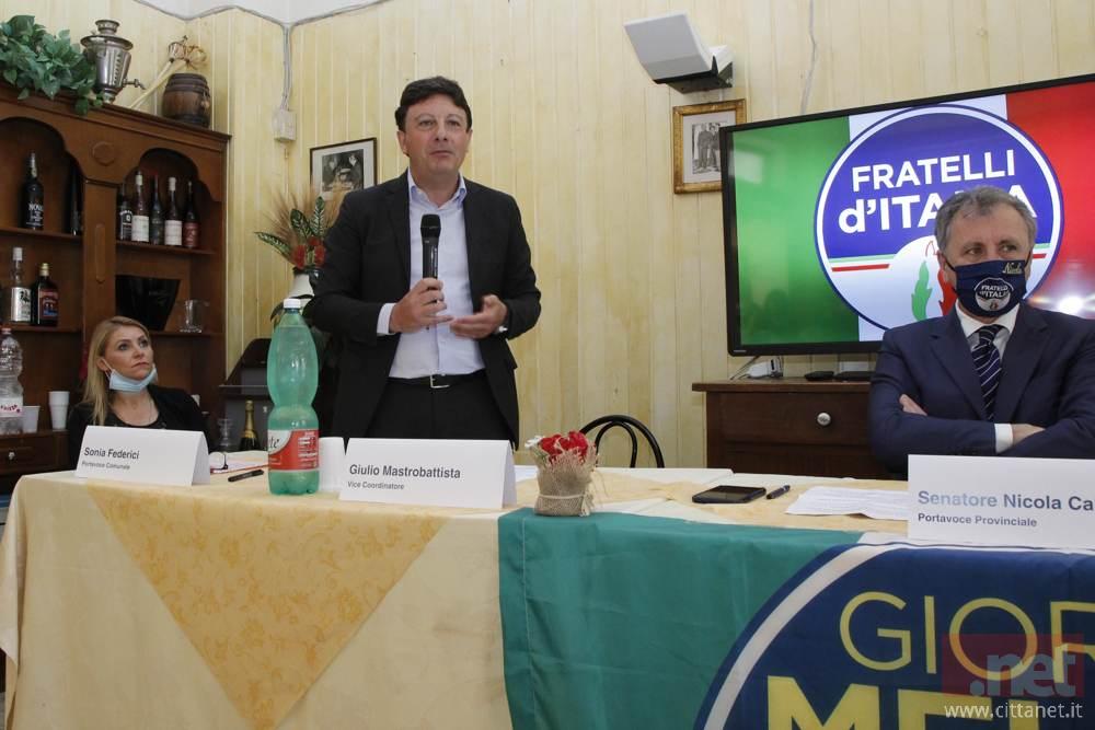“Un sindaco da solo non serve a nulla, ha bisogno di una squadra – ha aggiunto il consigliere regionale Antonello Aurigemma -. A suo supporto Giulio Mastrobattista troverà i consiglieri regionali, parlamentari ed europarlamentari di Fratelli d’Italia, pronti a sostenerlo nelle sue battaglie”.