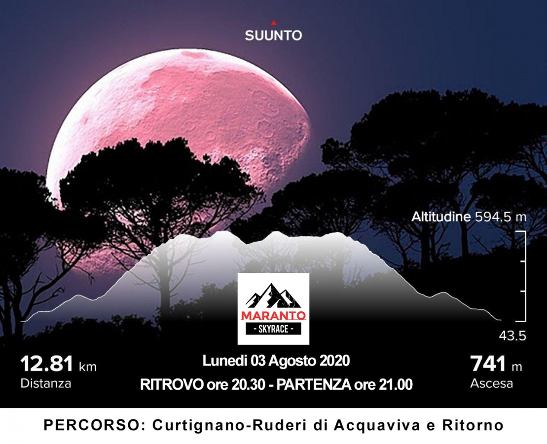 Lunedì 3 agosto 2020 infatti, gli atleti dell’associazione invitano chiunque voglia aggregarsi (ed abbia almeno una preparazione specifica, vista la difficoltà del percorso) a partecipare all’allenamento notturno su quello che è stato ribattezzato “Maranto Skyrace”. Il tracciato parte dalla contrada “Curtignano” a Fondi (LT) e si snoda fino ad arrivare ai ruderi di Acquaviva, nel Parco Naturale regionale dei Monti Ausoni, con un dislivello positivo pari a 741 metri, e uno “spettacolo” assicurato anche di notte.