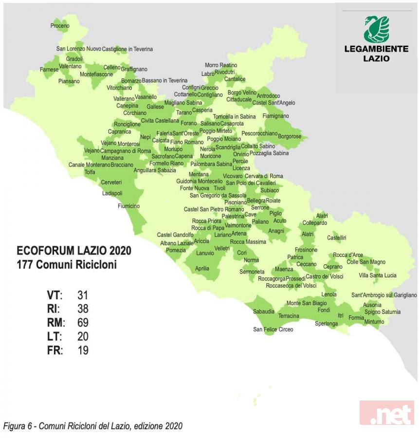 Il 16 dicembre si è svolto l'EcoForum 2020 di Legambiente Lazio, con dati forniti da Arpa Lazio, dove sono stati premiati i 177 comuni del Lazio che hanno raggiunto i migliori risultati nella raccolta differenziata. L’appuntamento si è svolto in diretta TV su Rete Oro e sulle pagine Facebook di Legambiente Lazio, La Nuova Ecologia e Rete Oro dove è possibile rivedere l’intero evento.