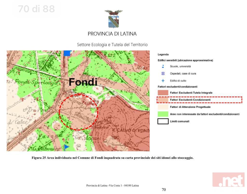La relazione, non elaborata dagli uffici del Comune di Fondi bensì dagli stessi tecnici dell'Ente che ha avanzato la proposta, individua peraltro altri siti nel sud pontino privi di fattori escludenti-condizionanti