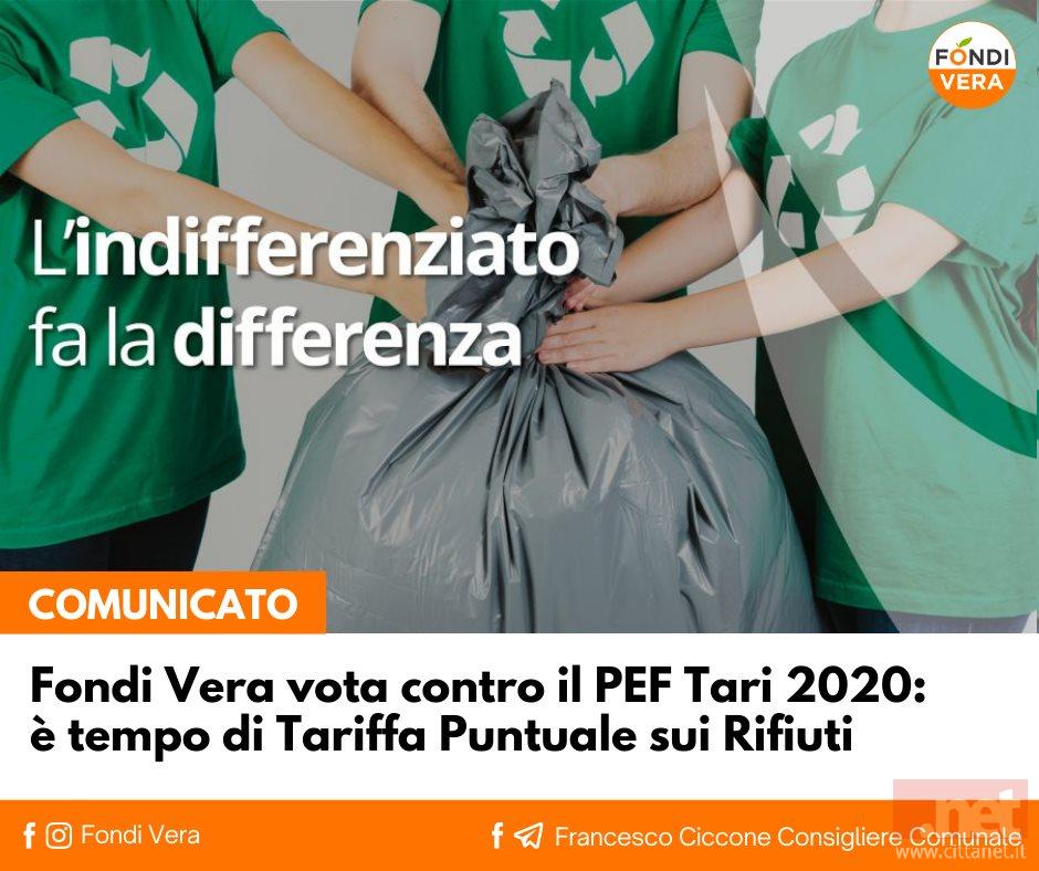 Nella Seduta di Consiglio Comunale di Venerdì scorso è stato votato il Piano Economico Finanziario TARI 2020, con un ritardo di cui i Cittadini devono essere messi a conoscenza. La prossima sfida può essere quella della “contabilizzazione del rifiuto”. Per questo Francesco Ciccone, Consigliere Comunale di Fondi Vera, nel suo intervento ha tenuto a ribadire la richiesta del nostro Movimento di Partecipazione Politica: non più una presunzione di conferimento di rifiuti, non più calcoli sul criterio dei metri quadrati dell’immobile di residenza, perché l’utente paghi per quanto indifferenziato produce.