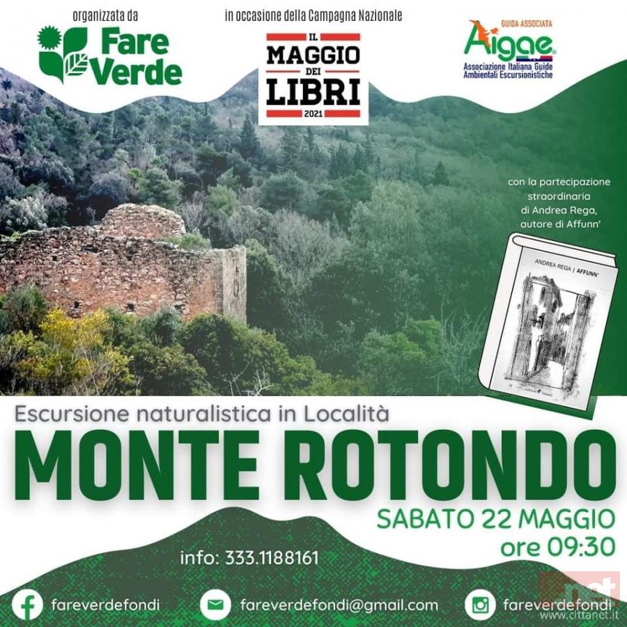 In occasione del Maggio dei Libri 2021, Fare Verde Fondi organizza un'escursione letteraria nel Parco Monti Aurunci, su un sentiero agevole ma poco conosciuto per arrivare sulla cima di Monte Rotondo, alla scoperta di antiche costruzioni che resistono al trascorrere del tempo. Accompagnerà il gruppo di partecipanti la Guida Ambientale Escursionistica Andrea Patriarca, con la partecipazione straordinaria di Andrea Rega, che leggerà lungo il tragitto alcuni passi del suo nuovo libro "Affunn" scritto in dialetto fondano.