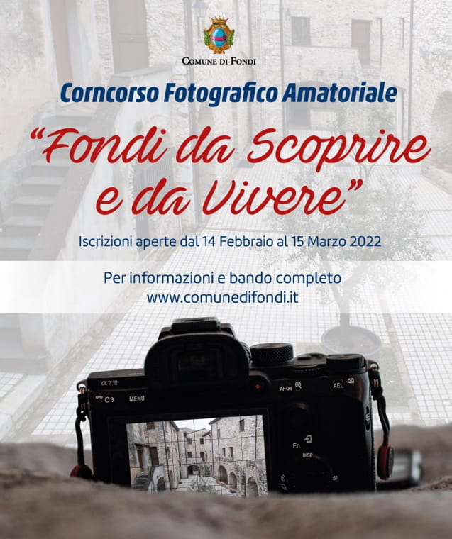Al via il concorso fotografico amatoriale “Fondi da scoprire e vivere”, promosso dal Comune allo scopo di promuovere e valorizzare il territorio in tutte le sue articolazioni artistiche, monumentali e naturalistiche. Ogni partecipante potrà inviare un solo scatto che potrà essere realizzato con qualsiasi tipologia di dispositivo ma dovrà essere necessariamente inedito, in formato jpeg e con visualizzazione orizzontale. Ogni immagine dovrà inoltre avere un titolo e una breve descrizione motivazionale sul soggetto.