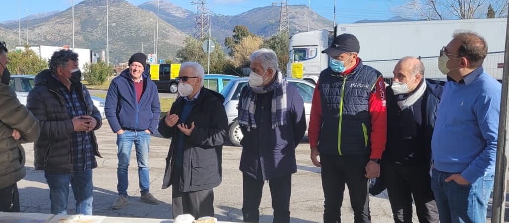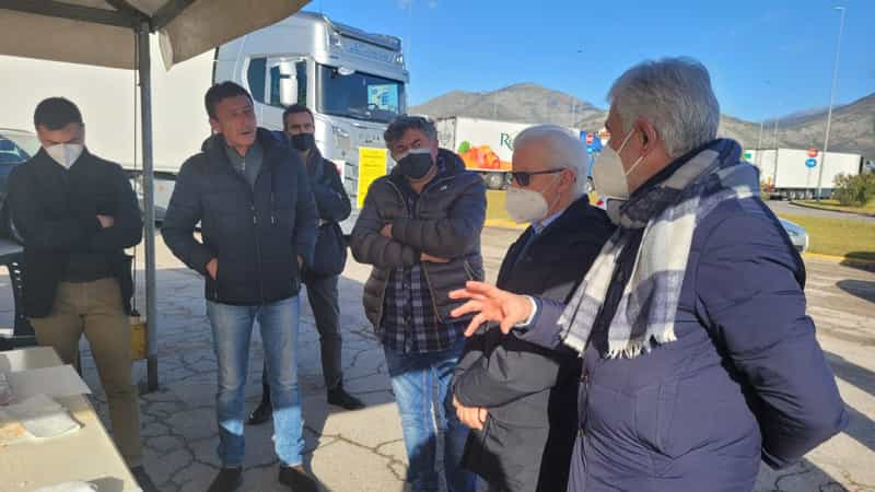 Il sindaco di Fondi Beniamino Maschietto, accompagnato dai consiglieri Mariano Di Vito e Guido La Rocca, delegati rispettivamente ai rapporti con il Mof e all'Agricoltura, si è recato ieri pomeriggio all'ingresso del Mof dove è in corso una manifestazione di protesta promossa dagli autotrasportatori del comprensorio, messi a dura prova dai rincari del carburante, dalle norme di settore sempre più stringenti e dalla mancanza di infrastrutture viarie adeguate e funzionali ad uno dei mercati all’ingrosso più importanti di Italia.