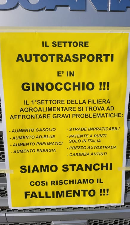La protesta, che ha preso forma a Fondi in quanto sede del Mercato ortofrutticolo tra i più grandi e importanti d'Europa, ha infatti assunto già da diversi giorni proporzioni nazionali e interessa trasversalmente tutti i settori commerciali. Il comparto ortofrutticolo, tuttavia, proprio in ragione della deteriorabilità della merce trasportata, è quello che più di ogni altro sta pagando il prezzo dei rincari con pesanti ripercussioni sull'intera filiera.