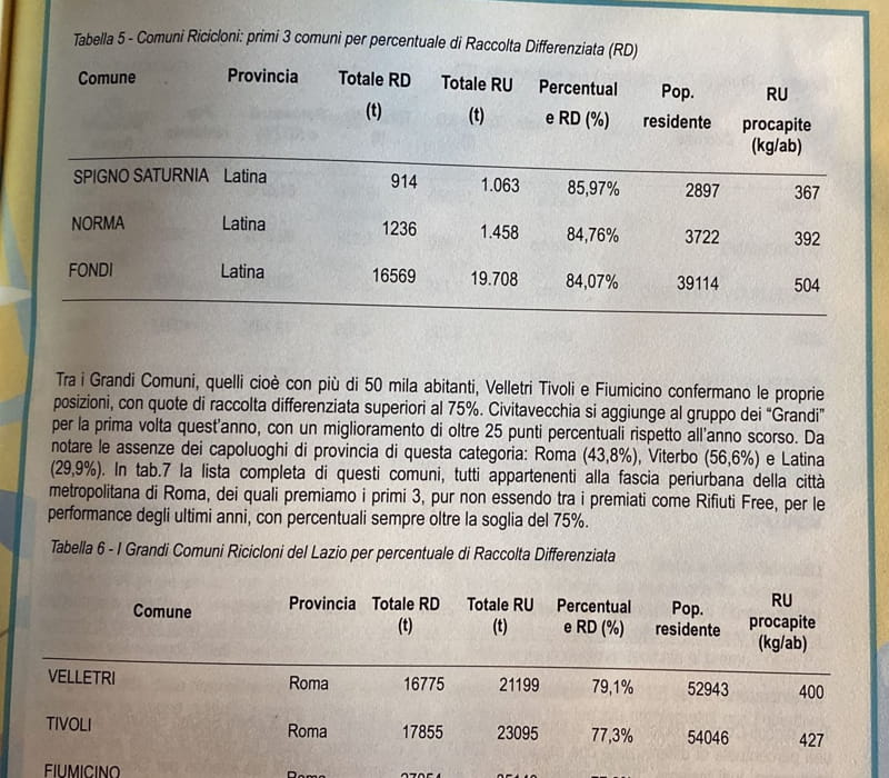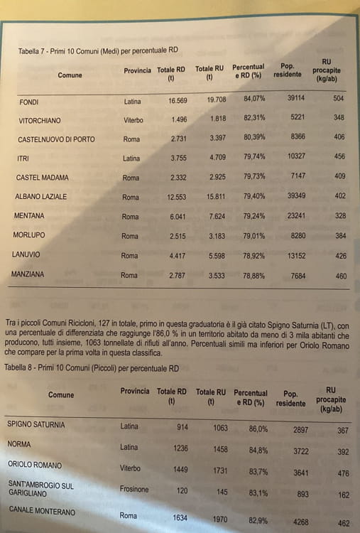 Comuni Ricicloni 2021: con l'84,4% di differenziata, per il terzo anno consecutivo, Fondi si aggiudica il primo posto nel Lazio nella categoria “Comuni Medi”.