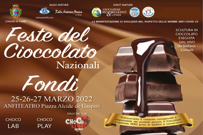La Festa del Cioccolato promossa dalla CHOCO AMORE – spiegano gli organizzatori - è l’unico evento gastronomico monotematico esistente che si manifesta, non solo come fiera-mercato, ma anche come autentica esperienza formativa volta a promuovere la cultura del più amato degli alimenti. Dopo Foligno, Roma e Trani, dove la tre giorni ha avuto molto successo, il tour prosegue in provincia di Latina facendo tappa per la prima volta a Fondi.