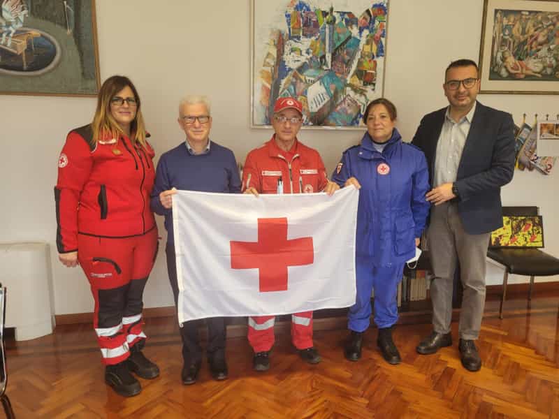 Questa mattina la presidente del comitato di Fondi della CRI ha ufficialmente consegnato al sindaco Beniamino Maschietto la bandiera della Croce Rossa che, su iniziativa dell’Anci (Associazione nazionale comuni italiani) sarà esposta all’esterno di tutti i municipi dello Stivale.