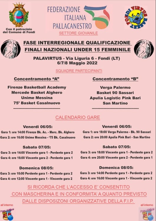 L’evento, promosso dal settore giovanile della Federazione Italiana Pallacanestro, è organizzato dalla Virtus Basket Fondi con il patrocinio del Comune di Fondi.
