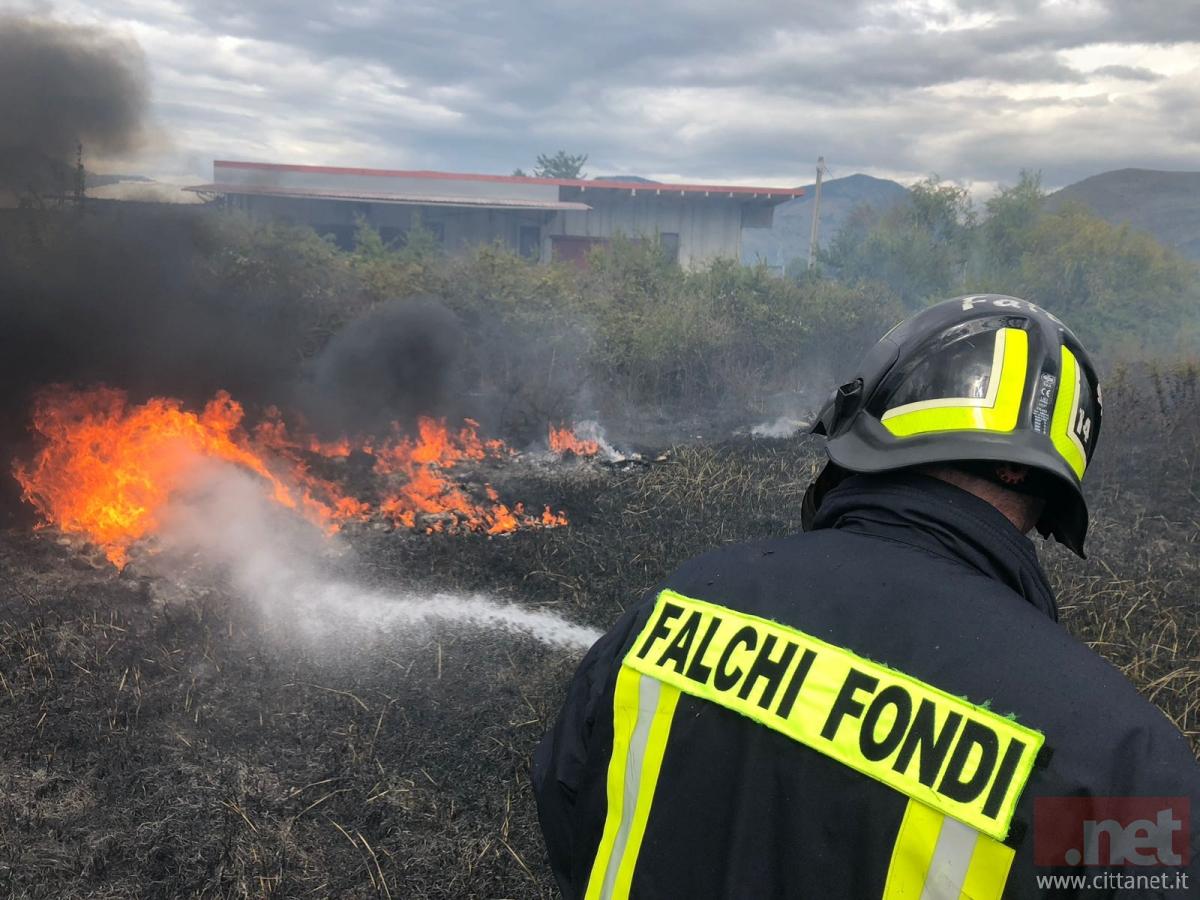 Pericolosissimo incendio di sterpaglie oggi in viale Piemonte, nei pressi del Mof.
