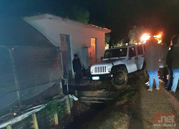 Pioggia, asfalto scivoloso, strade buie e cunette laterali: non è stato difficile perdere il controllo per una jeep che, poco dopo le 21 di ieri, è finita in un fossato.