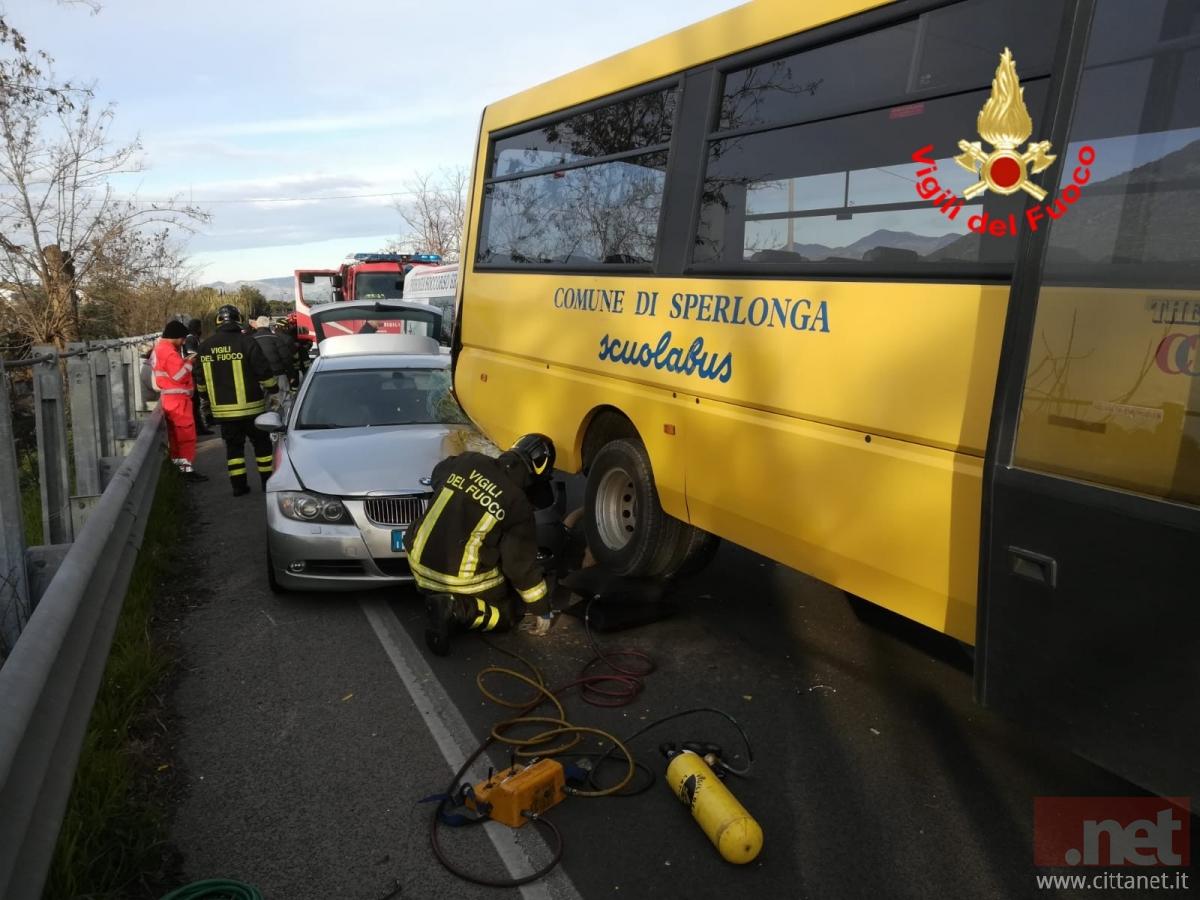 Sul posto si riscontrava la presenza di una vettura ed uno scuolabus, entrambi incidentati per cause in fase di accertamento da parte delle forze dell'ordine.