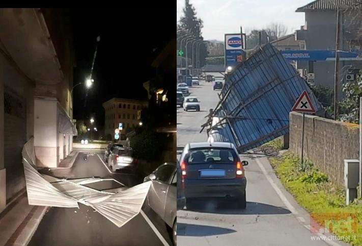 Tragedia sfiorata poco prima delle 10 in viale Europa a Monte San Biagio dove il vento ha divelto una tettoia, nei pressi del distributore di benzina.