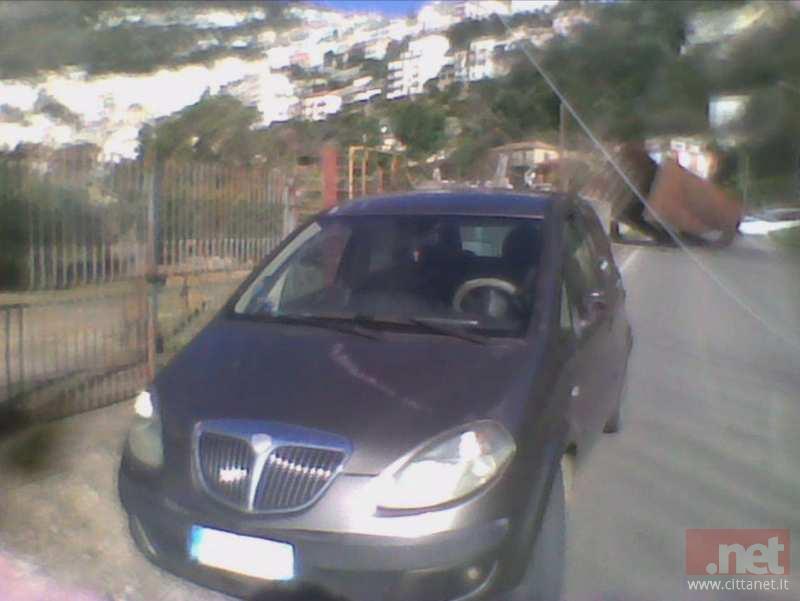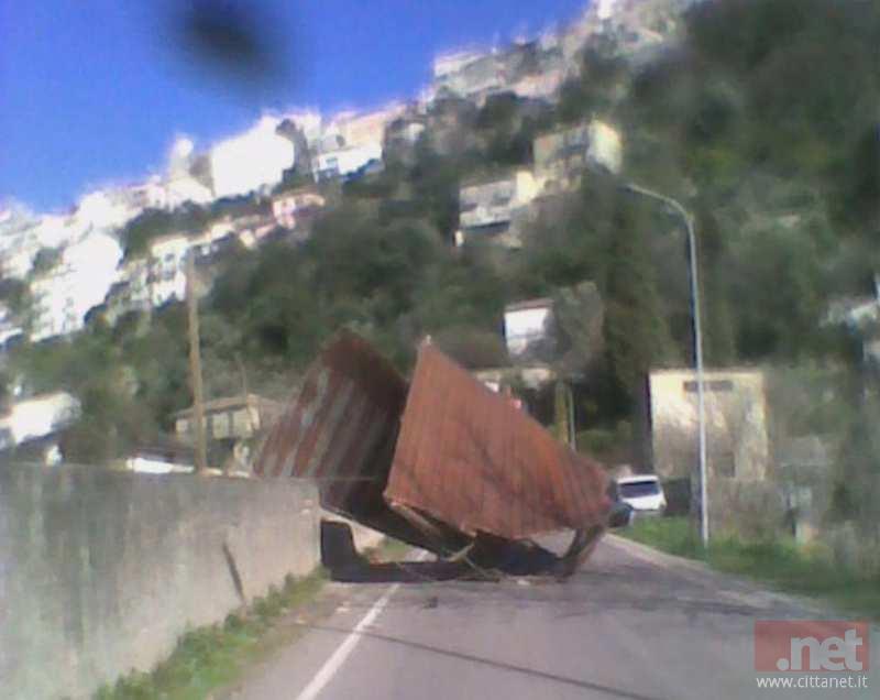Il panello di metallo ha colpito un'auto in corsa. Illese le persone che viaggiavano a bordo del mezzo, una Lancia Musa.