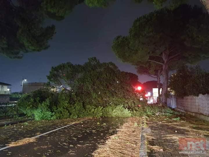 Strage di alberi e raffica di interventi da parte dei vigili del fuoco e dei Falchi di Pronto Intervento che hanno lavorato fino a notte fonda per rimettere in sicurezza le strade della città.