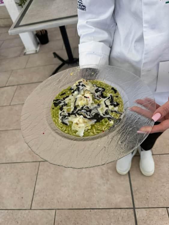 Questa gara tra chef consisteva nel presentare un antipasto e un primo piatto. Alberto de Maldé, executive chef dell'Osteria de Maldé, ha proposto l'antipasto, “tartarine di gambero rosso con crema di broccoletti, stracciatella e pane croccante ai 5 cereali”; Fabiola Di Crescenzo ha proposto come primo piatto “risotto con crema di piselli, crema di pecorino al nero di seppia e seppia cruda aromatizzata al limone con un pizzico di pepe rosa”.