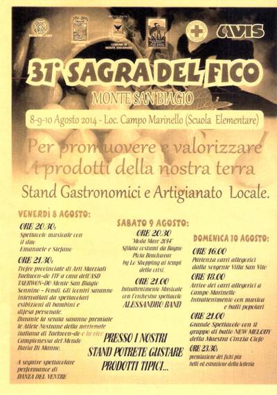 Inizia alle ore 20.30 una delle manifestazioni più antiche di Monte San Biagio: la Sagra del Fico, giunta alla sua 31ma edizione, che vuole promuovere e valorizzare i prodotti della nostra terra.